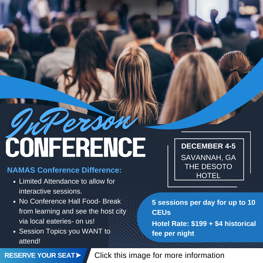Join us in historic Savannah, Georgia for a live, in-person event designed for auditors, coders, compliance professionals, and physician educators. The NAMAS Annual Conference is where our community gathers to share knowledge, sharpen skills, and strengthen compliance strategy together.